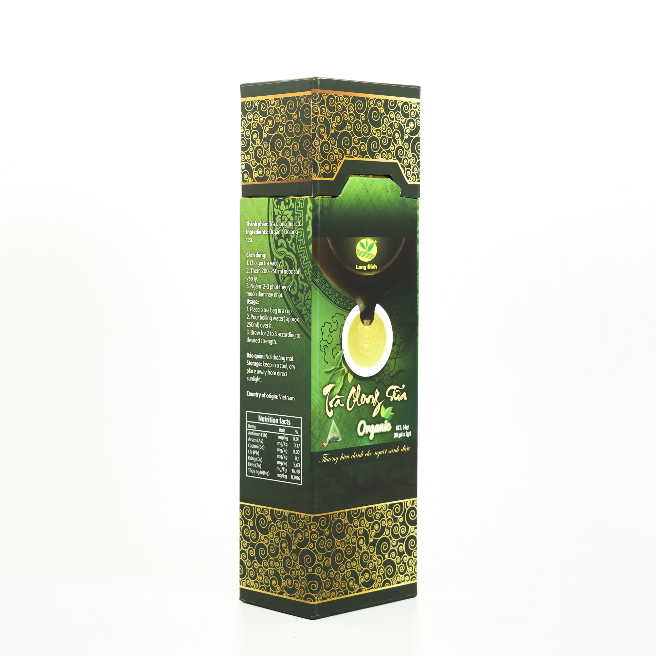 Trà được trồng và sản xuất theo tiêu chuẩn Organic nghiêm ngặt, đảm bảo không hóa chất bảo quản, giúp giữ trọn vẹn hương vị thiên nhiên. Sản phẩm được đóng gói trong bao bạc hút chân không 100g (kích thước 7*6*4cm), giúp bảo quản trà tốt nhất, đảm bảo hương thơm và chất lượng lâu dài.