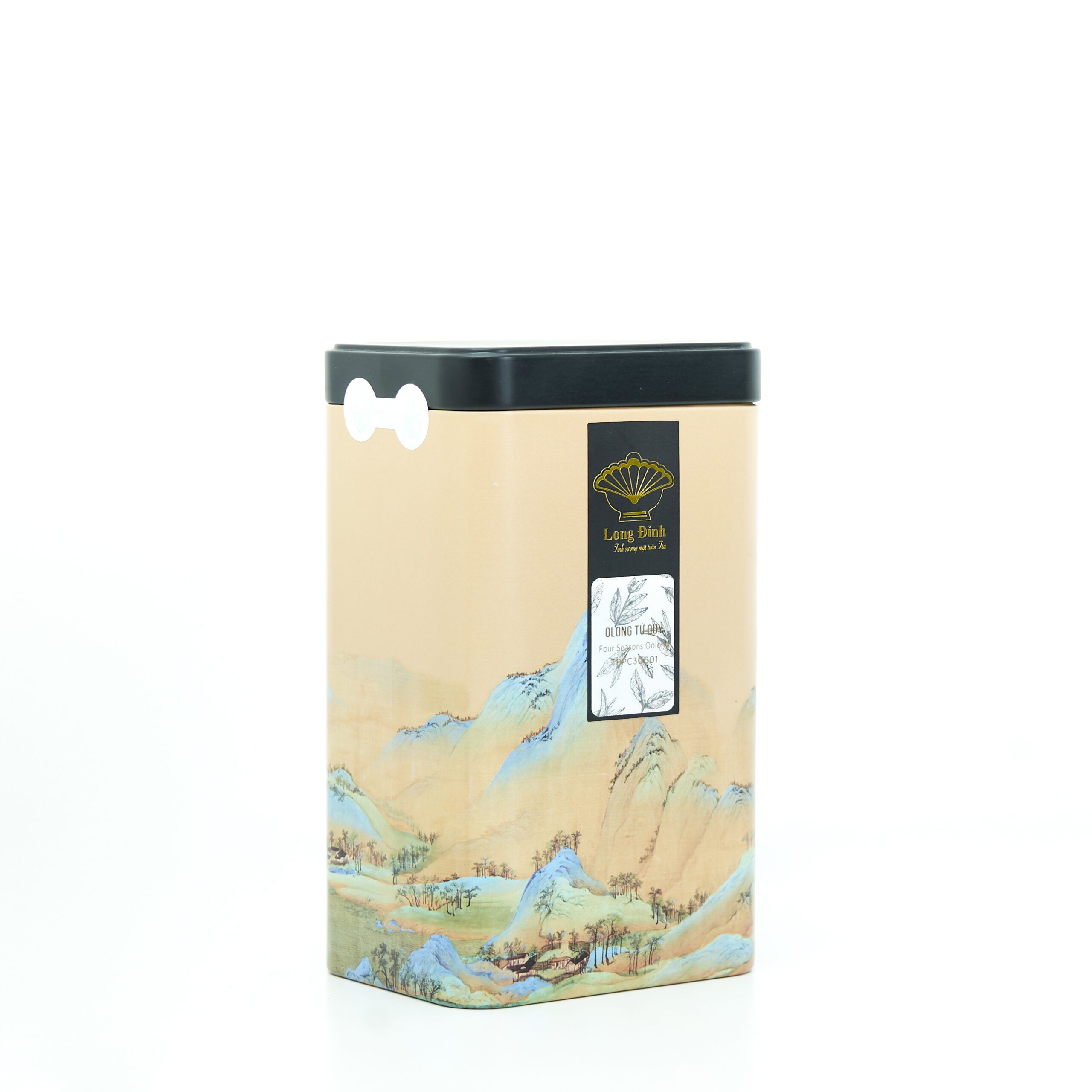 Quà tặng Trà Oolong Tứ Quý được thiết kế tinh tế với túi giấy đỏ in logo Long Đỉnh sang trọng. Sản phẩm được chứa trong hộp thiếc với decal đẹp mắt, mang lại cảm giác cao cấp, ấn tượng ngay từ cái nhìn đầu tiên. Bên cạnh đó, mỗi hộp trà còn kèm theo túi xách giấy tiện lợi, góp phần nâng tầm giá trị món quà.