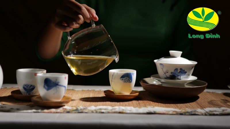 - Rót trà: Rót trà ra chén tống (nếu có), sau đó chia đều ra các chén nhỏ để thưởng thức.